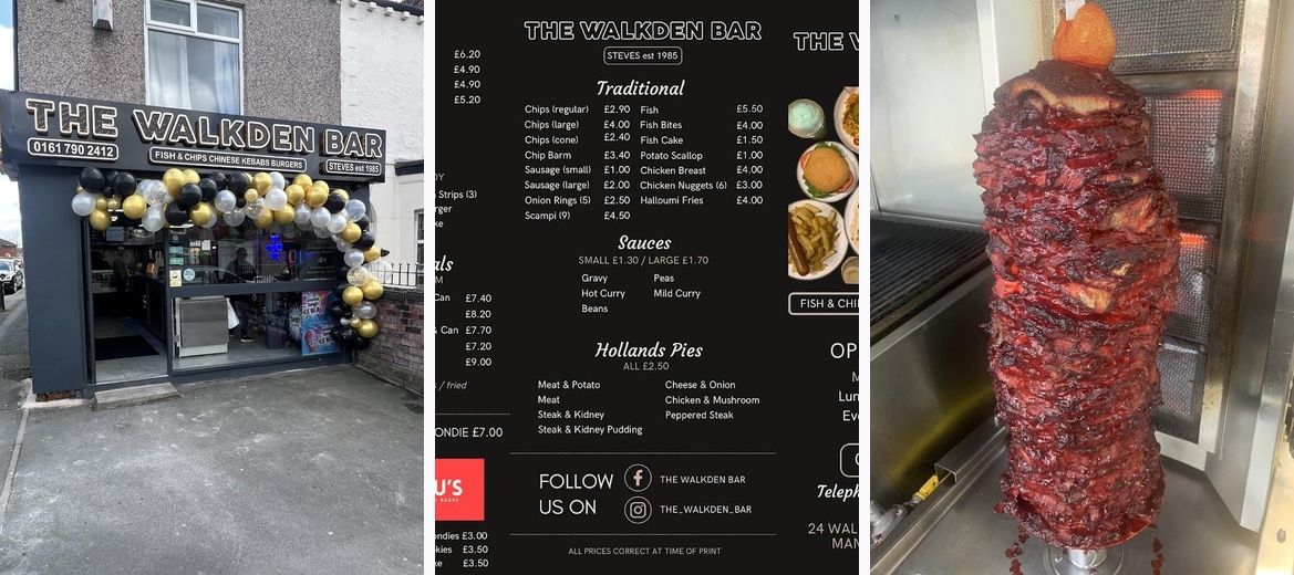The Walkden Bar serves a variety of cuisines, including traditional fish and chips, kebabs, burgers, and a range of authentic Chinese dishes.